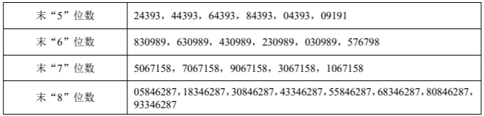 凡参与网上发行申购信达证券A股股票的投资者持有的申购配号尾数与上述号码相同的,则为中签号码。中签号码共有29.187万个,每个中签号码只能认购1000股信达证券A股股票。