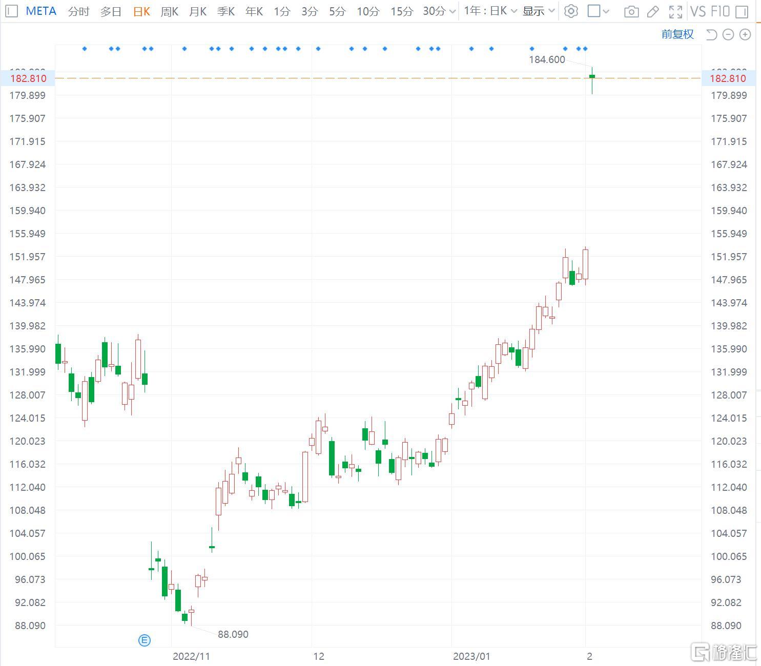 格隆汇2月2日丨Meta大幅跳涨18.8%,报181.91美元,总市值4823亿美元,股价创近8个月新高。Meta第四季收入321.65亿美元,超预期的315.3亿美元,同比跌4%;纯利46.52亿美元,每股盈利1.76美元,同比跌52%。Meta同时公布400亿美元的股份回购计划,较去年的279亿美元回购大幅增加。 Meta刚刚达到每日活跃用户20亿的里程碑,同比增长4%。Meta指出,所有APP的广告展示次数同比增长23%,每条广告的平均价格同比下降22%。截至去年底,员工人数86482人,同比仍增长20%,并已大部分反映裁员人数。 Meta预期2023年首季收入260至285亿美元之间,去年同期279亿美元;预期全年支出890至950亿美元,低于早前预期的940至1000亿美元,因员工支出及收入成本增长减慢。